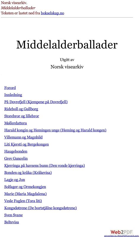 VEV - Online PDF Norsk visearkiv - Middelalderballader Epub BookBoon